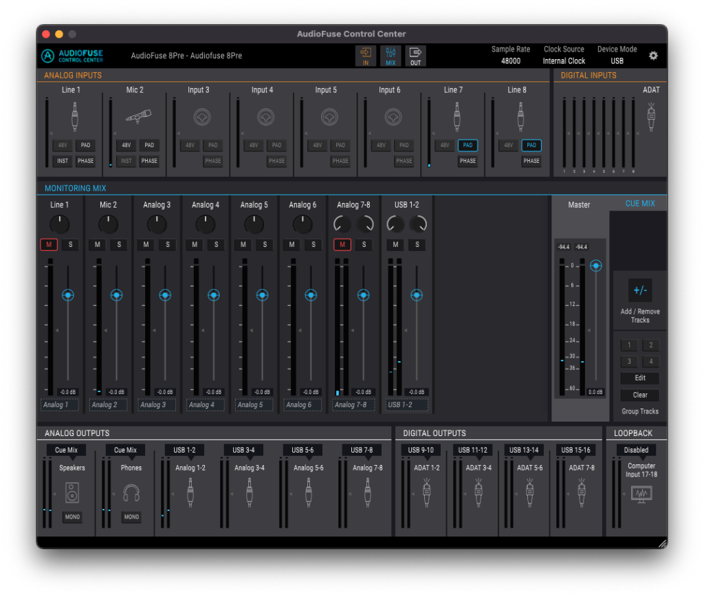 私の場合、多入力オーディオインターフェースの Arturia AudioFuse 8Pre(18in/18out)を使用していて、レコーディング もするしアナログアウトボードをDAW上のハードウェアインサートで使用しています。そのままだと入出力は SoundID Reference の1、2だけになってしまいますので、アウトボードが使用できません。